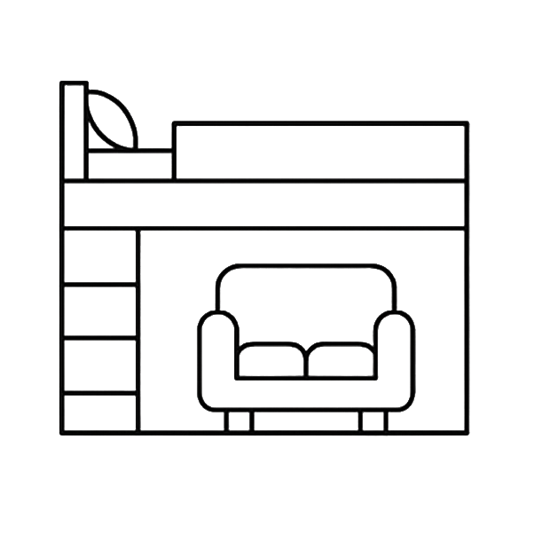 Offene Galerie mit zwei weiteren Einzelbetten (je 90 cm breit)